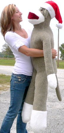 ✓ Cheap CHRISTMAS SOCK MONKEY - BIG PLUSH 54" STUFFED TOY wears SANTA HAT- Color: GRAY - AMERICAN MADE IN THE USA AMERICA Buy Now!